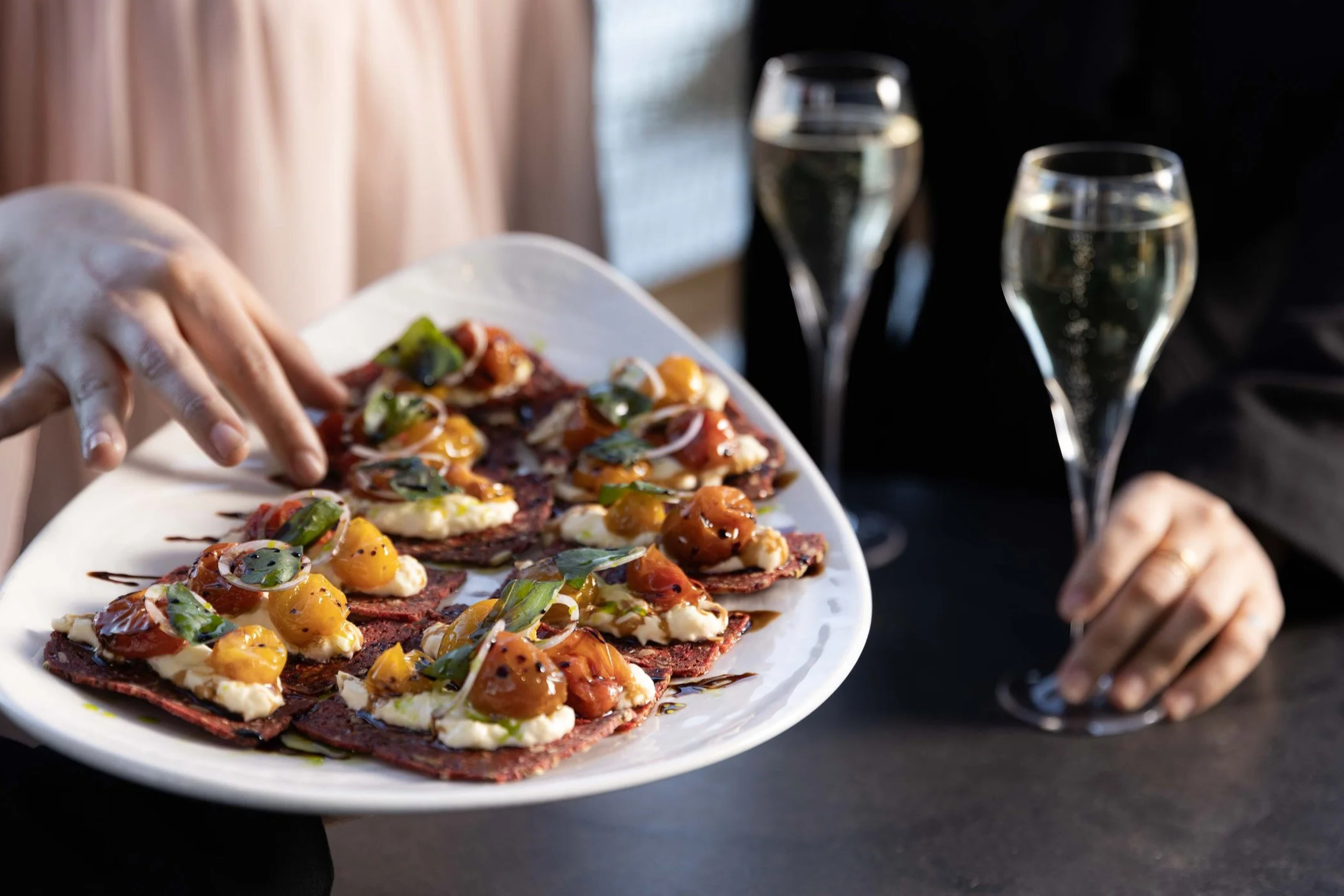 Food and drink sit at the heart of every Berth event. Our contemporary Mediterranean menus are crafted for sharing, conversation and celebration, showcasing seasonal produce with refined presentation. You can choose from tailored seated menus, shared-style dining or elegant roaming canapés, all complemented by curated beverage packages featuring premium wines, beers and spirits.