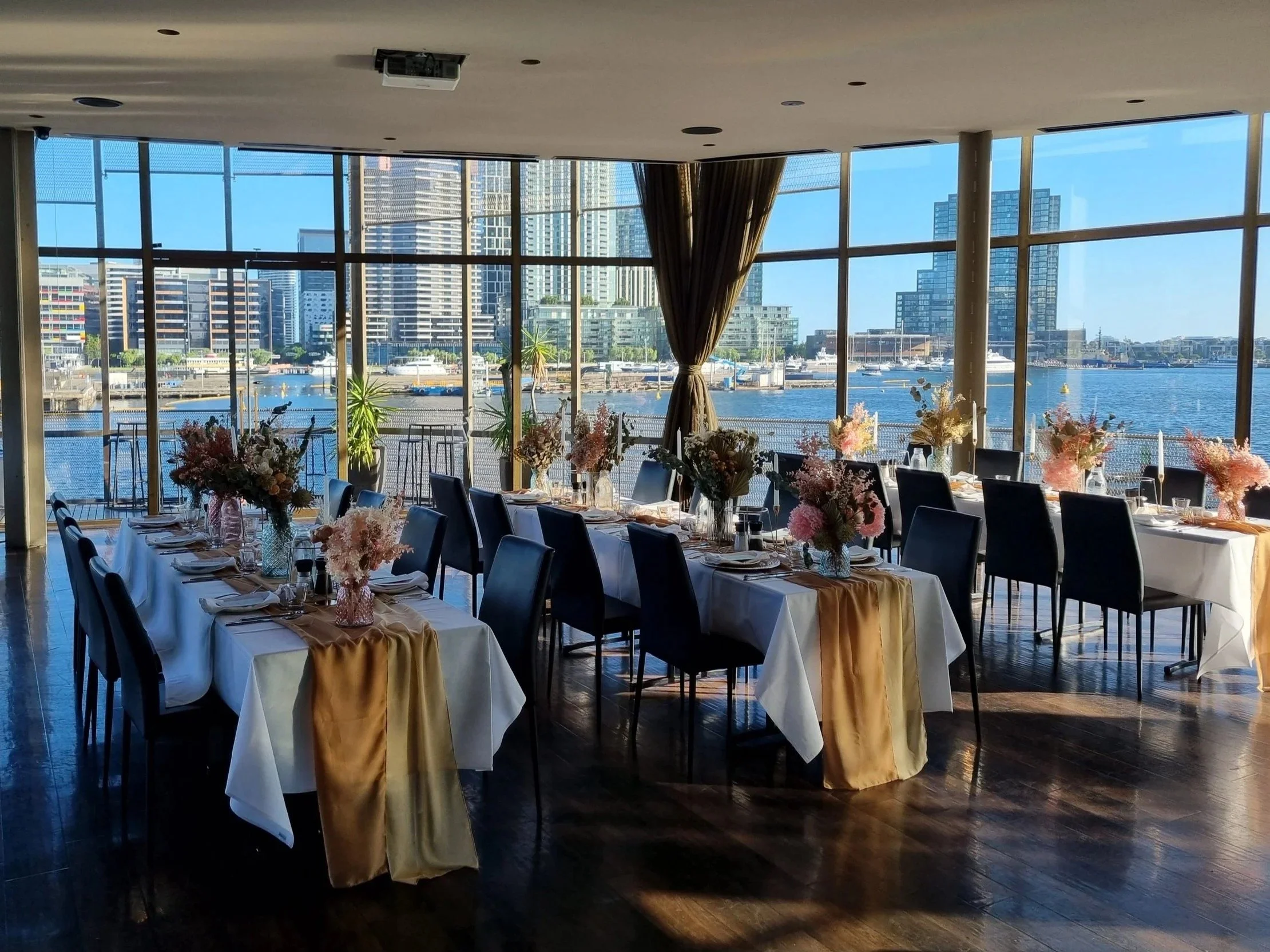 Premier Melbourne event venue. With floor-to-ceiling windows framing Victoria Harbour and the Melbourne skyline, Berth is a purpose-built space that feels both sophisticated and welcoming. Designed for memorable occasions, the venue lends itself equally to seated celebrations and elegant cocktail events, making it a versatile choice for corporate functions, weddings, milestone birthdays and christenings.