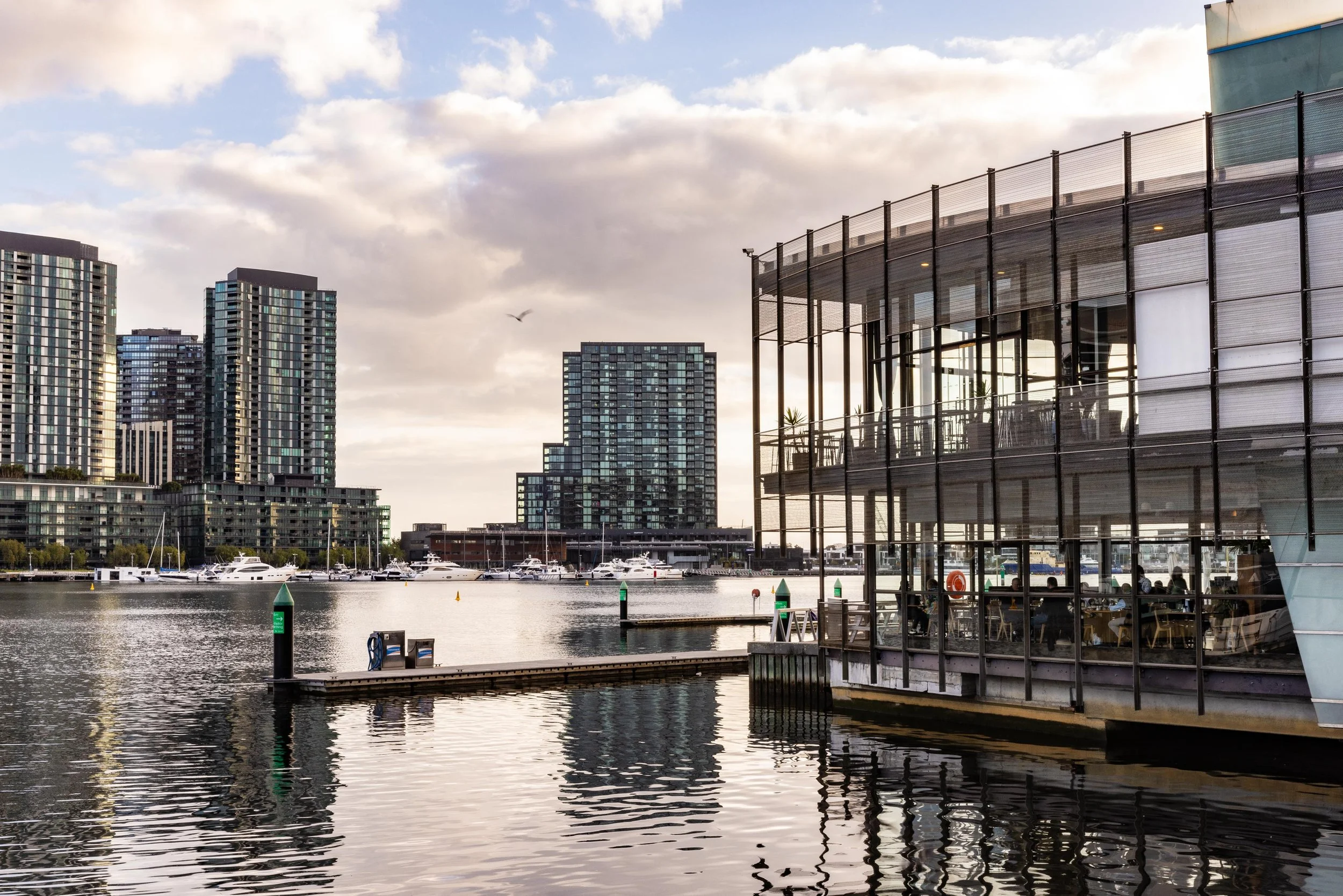 Our upstairs function space offers a peaceful setting with panoramic views of the water and Melbourne skyline. Flooded with natural light and featuring floor-to-ceiling windows, the venue provides a gentle and dignified atmosphere for your gathering.